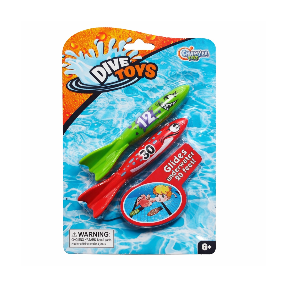 Lanzador de piscina con torpedos acuáticos. Incluye 2 piezas y está disponible en 2 modelos surtidos. Ideal para juegos divertidos bajo el agua.