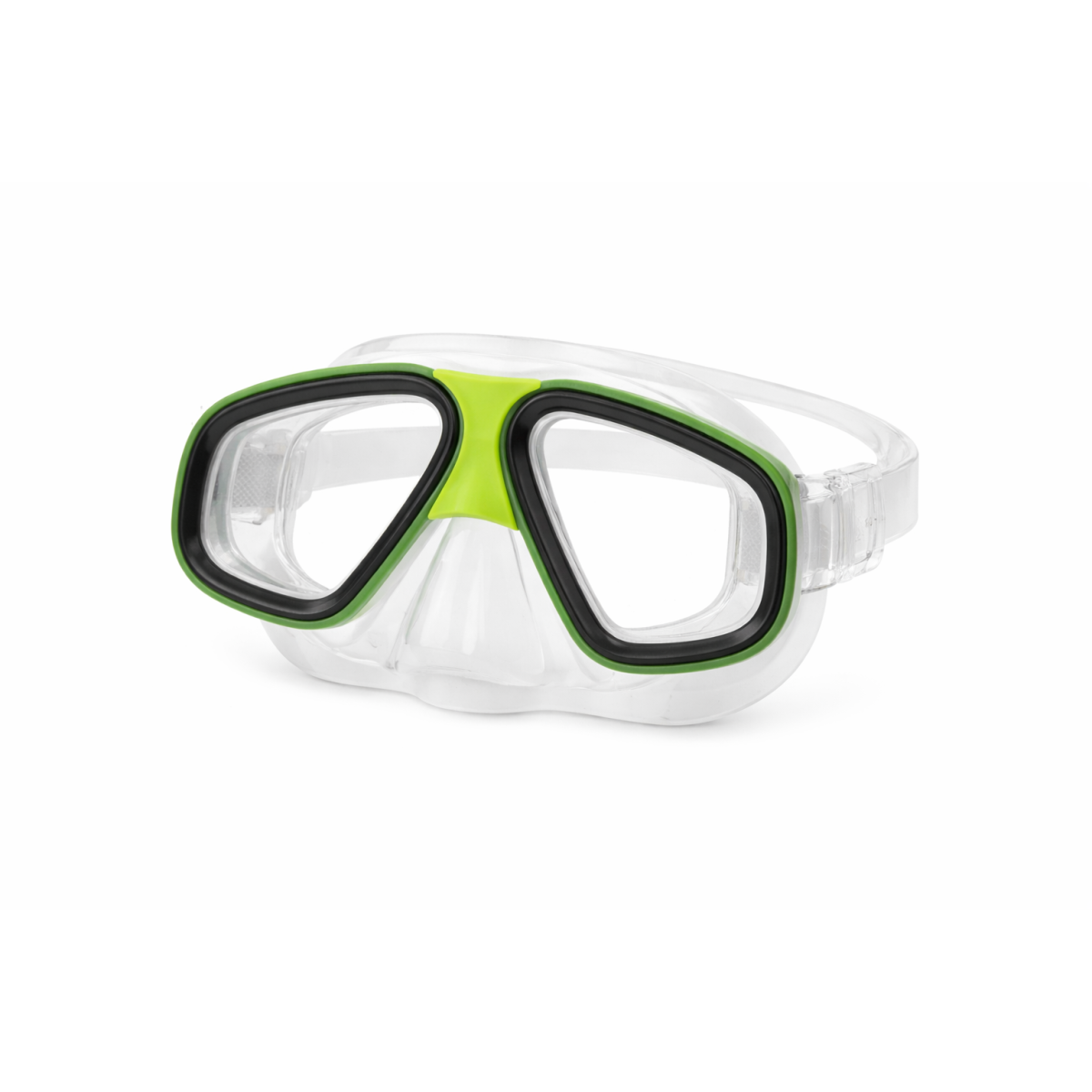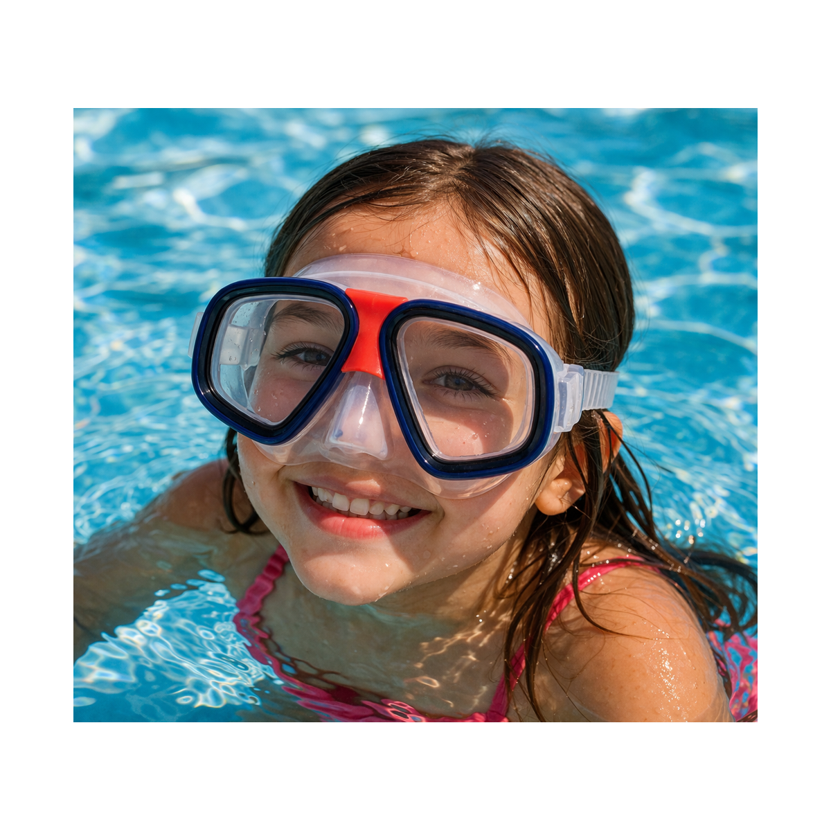 Fabricada en PVC, ofrece un ajuste firme y confortable que se adapta bien al rostro, ayudando a evitar la entrada de agua durante su uso. Su diseño favorece una buena visibilidad bajo el agua, permitiendo observar el entorno mientras nadan, juegan o se inician en el buceo recreativo.