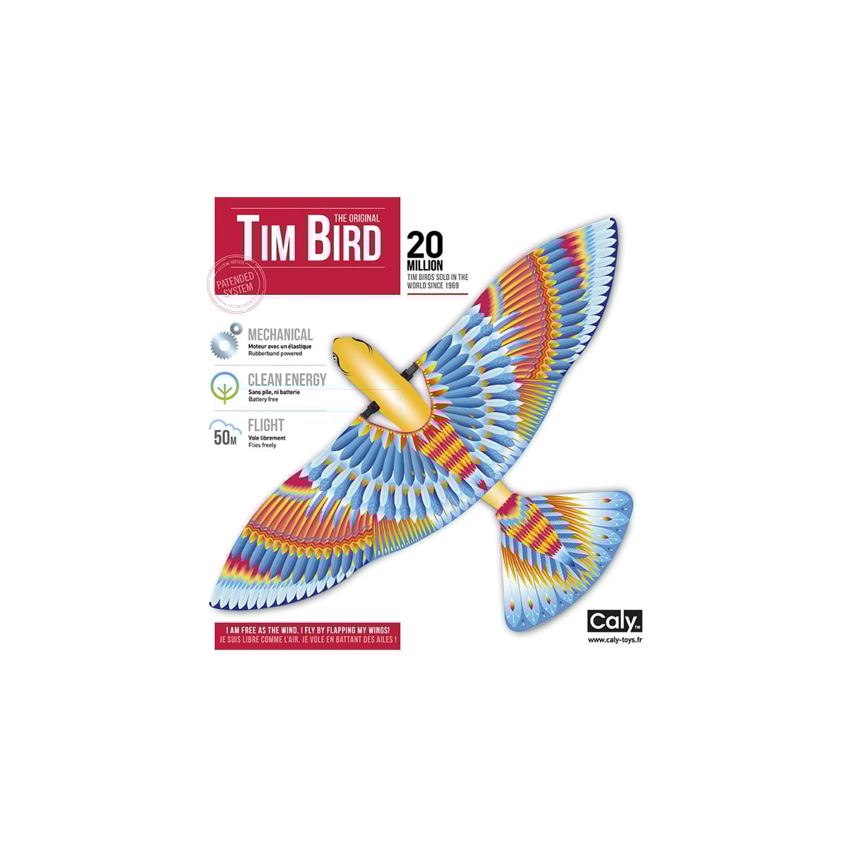 Descubre el pájaro volador Tim, un clásico juguete mecánico que bate sus alas de verdad y vuela hasta 50 metros sin pilas. ¡Pura diversión al aire libre!