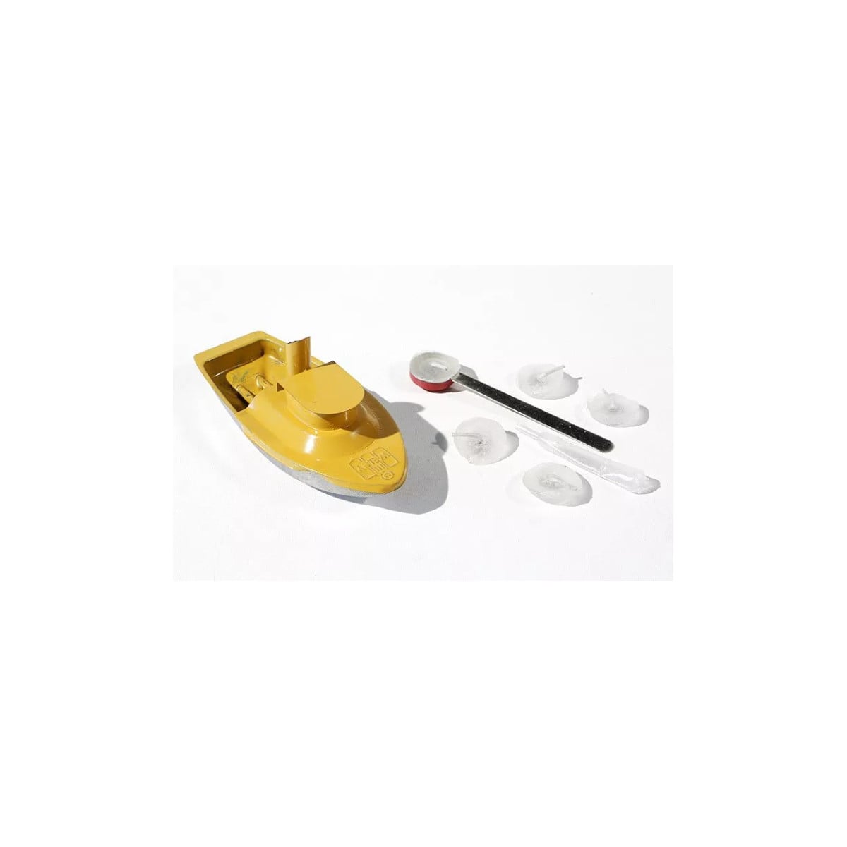 Para ponerlo en marcha, se utiliza la pipeta incluida para introducir un poco de agua en los tanques del barco. A continuación, se enciende una de las velas y se coloca en la bodega. Tras unos segundos, cuando el agua se calienta, el barco comienza a navegar de forma autónoma, impulsado por el vapor. Incluye 5 velas de recambio, lo que permite disfrutar de la experiencia en varias ocasiones.