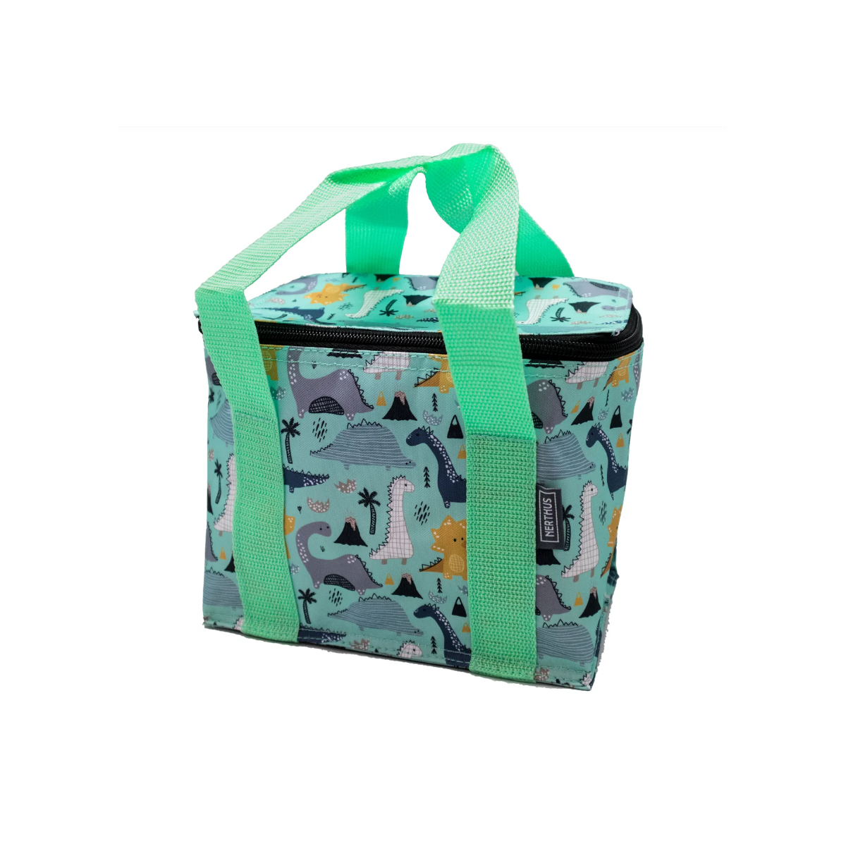 Una bolsa térmica con estampado de dinosaurios que mantiene la comida fresca y hace que cada almuerzo sea una aventura divertida y deliciosa.