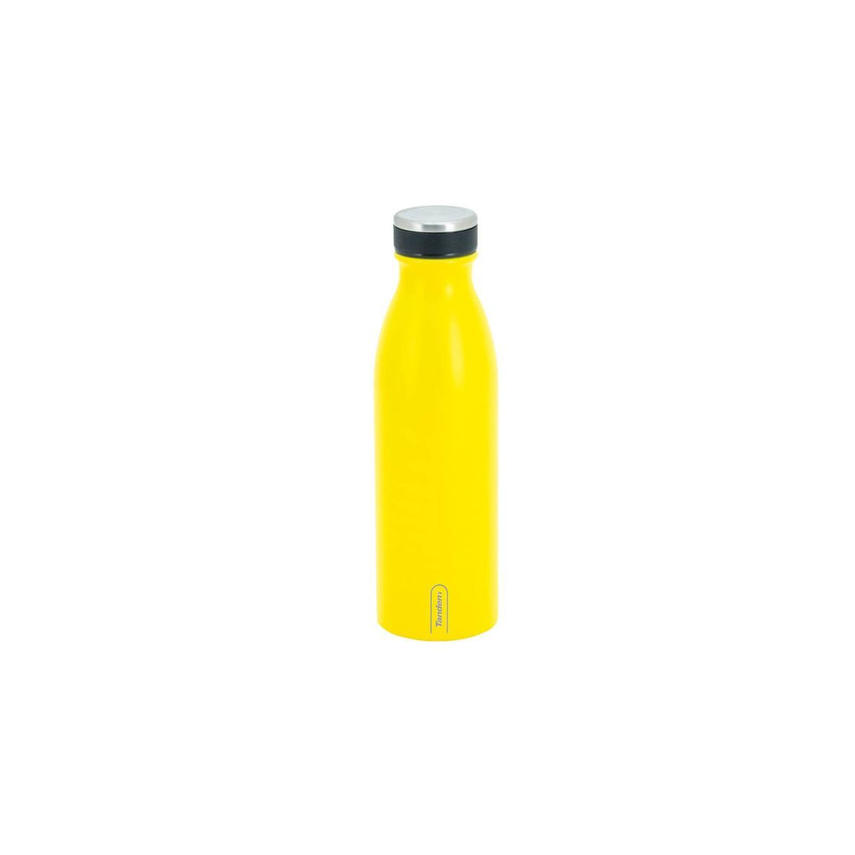 Tandem Botella Amarillo Flúor 500 Ml: diseño vibrante, tapa hermética y acero inoxidable para mantener bebidas frías o calientes. ¡Ideal para cada día!