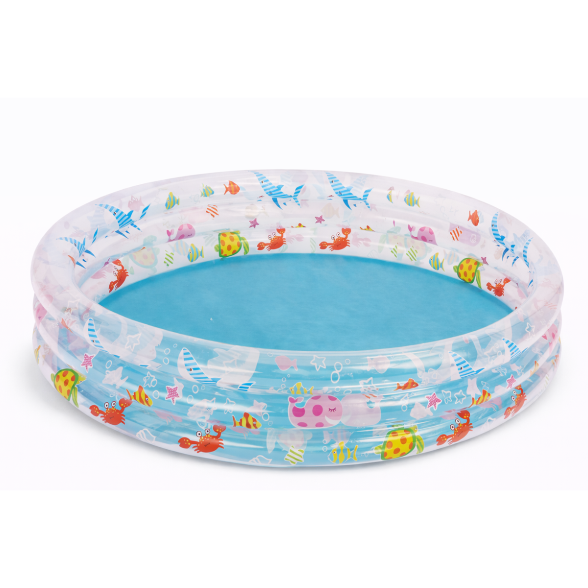 - Diseño: Piscina hinchable de 3 aros con estampado marino lleno de color, con dibujos de animales acuáticos que la hacen muy divertida para los peques.