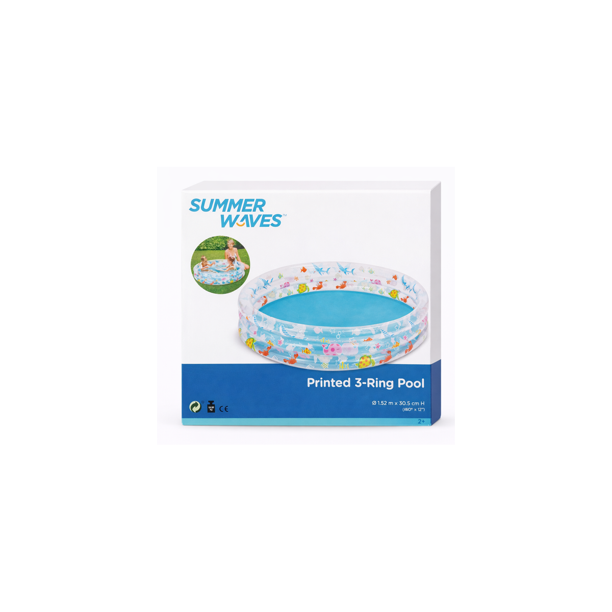 De la marca Summer Waves, este modelo destaca por sus tres aros con estampado de temática marina, donde aparecen peces, cangrejos y otros elementos del fondo del mar que hacen la experiencia mucho más atractiva para los peques. Su estructura hinchable aporta estabilidad y comodidad, ideal para que jueguen con total libertad durante los días más calurosos.