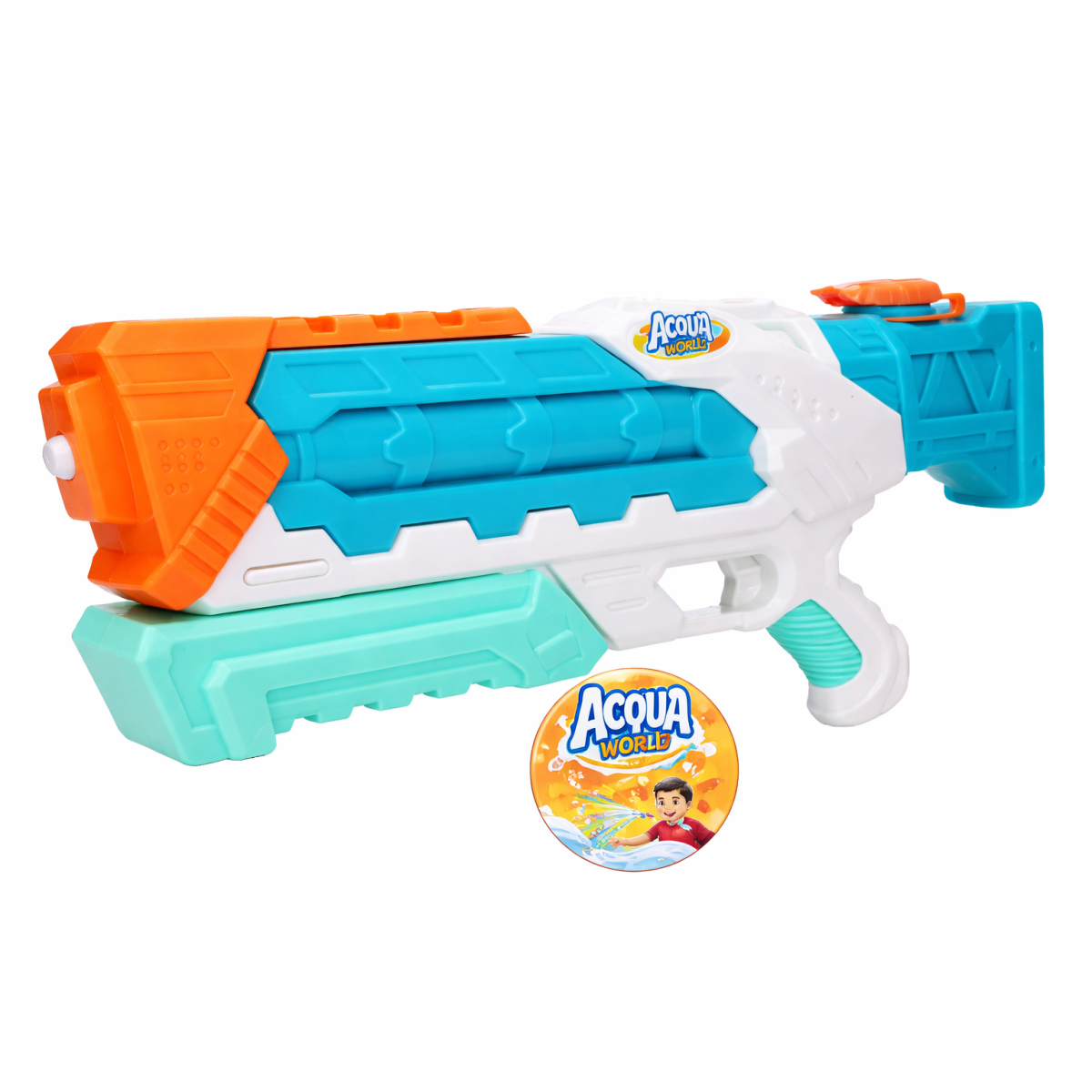 Pistola de agua Aqua World de 40 cm. Gran tamaño y alcance para juegos refrescantes en verano. Ideal para playa, piscina o jardín.