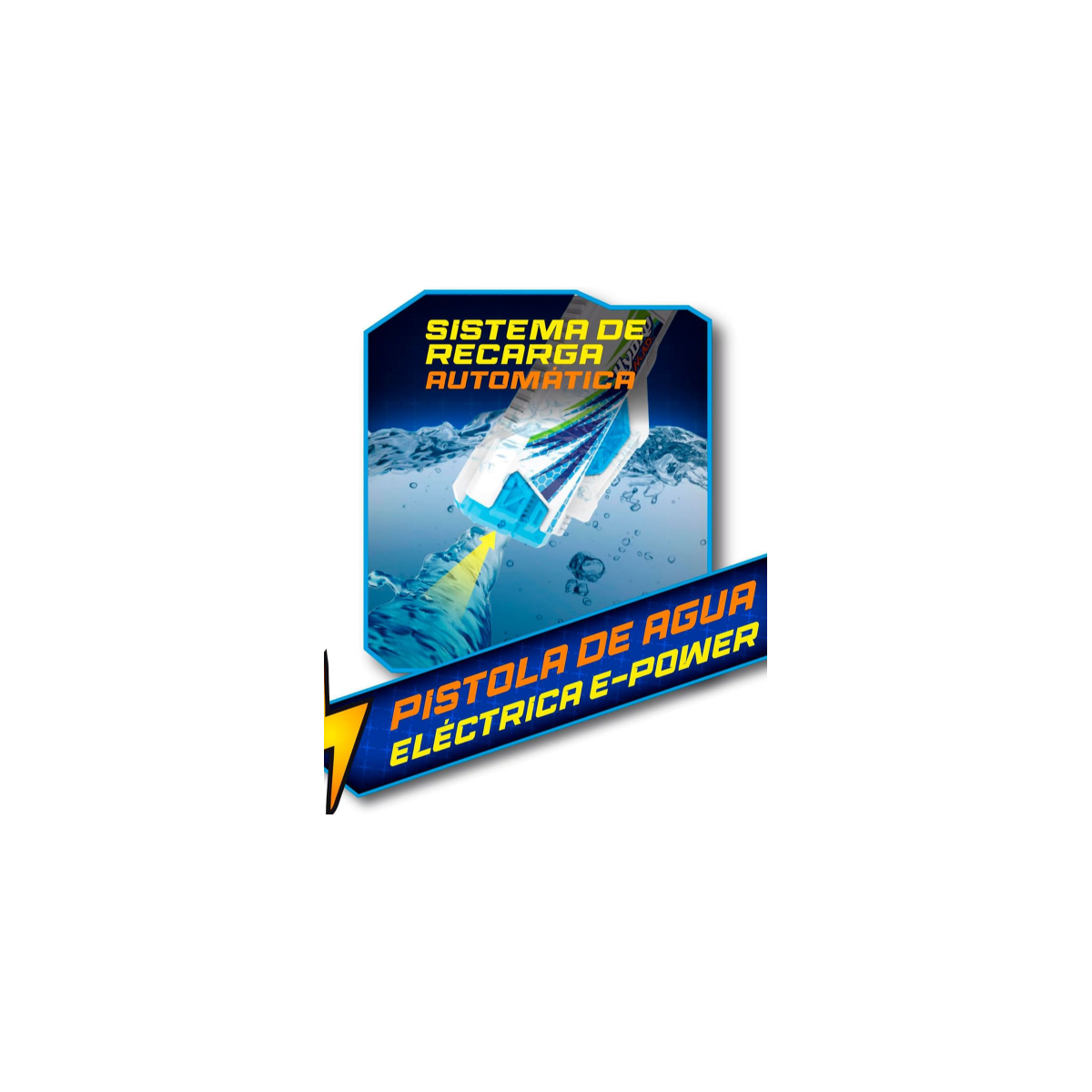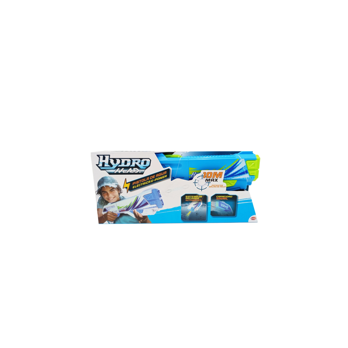 Hydro M.A.D. es una potente pistola de agua eléctrica pensada para llevar las batallas acuáticas al siguiente nivel. Gracias a su sistema eléctrico E-Power, dispara chorros de agua con fuerza y precisión, alcanzando hasta 10 metros de distancia.