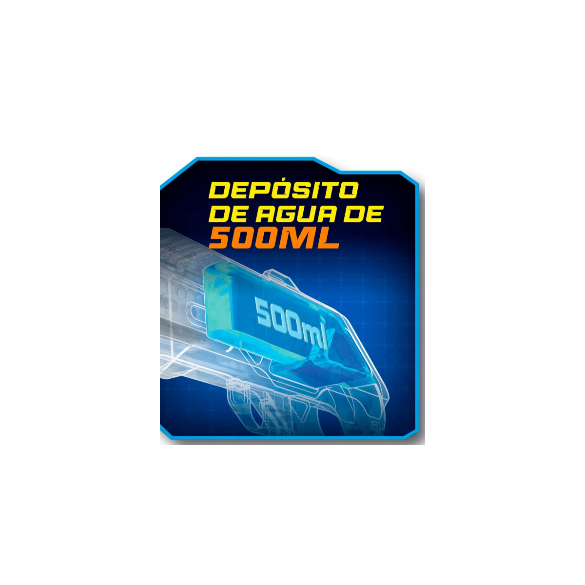 Cuenta con sistema de recarga automática que facilita volver a la acción en segundos, evitando interrupciones largas en pleno juego. Su depósito de 500 ml ofrece buena capacidad para disfrutar durante más tiempo antes de rellenar.