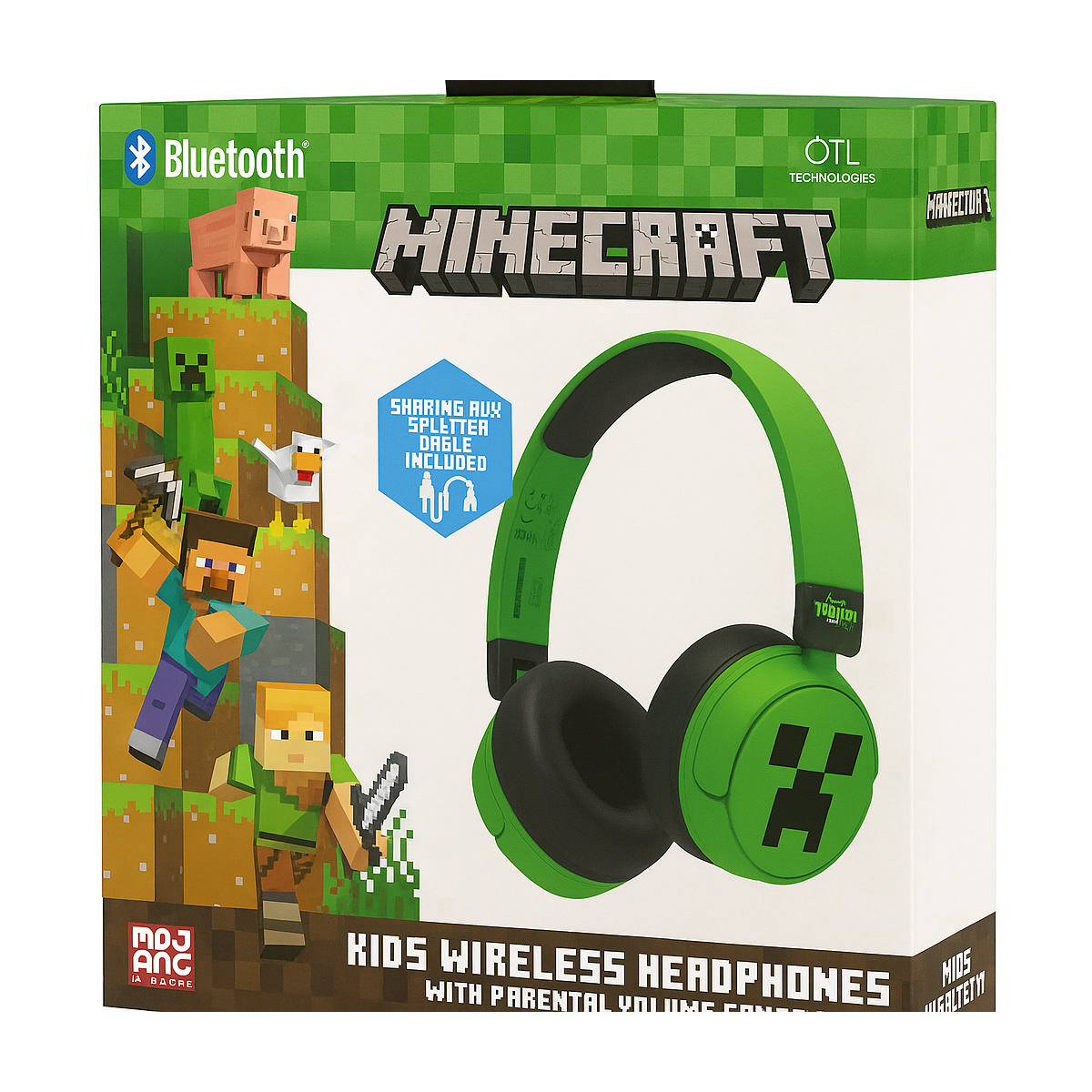 Descubre los Auriculares Minecraft Bluetooth; con diadema ajustable, volumen seguro y diseño plegable para diversión segura y estilosa.