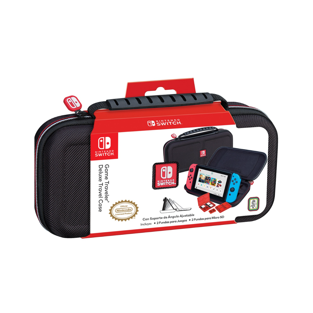 Además, este pack incluye dos estuches para juegos y dos estuches para tarjetas micro SD, que resultan perfectos para llevar varios títulos contigo sin preocuparte por pérdidas o golpes. El exterior de la funda está fabricado en EVA, nylon y plástico, logrando resistencia sin añadir peso innecesario. También incorpora un asa de transporte firme y cómoda, pensada para llevarla sin esfuerzo durante trayectos más largos.