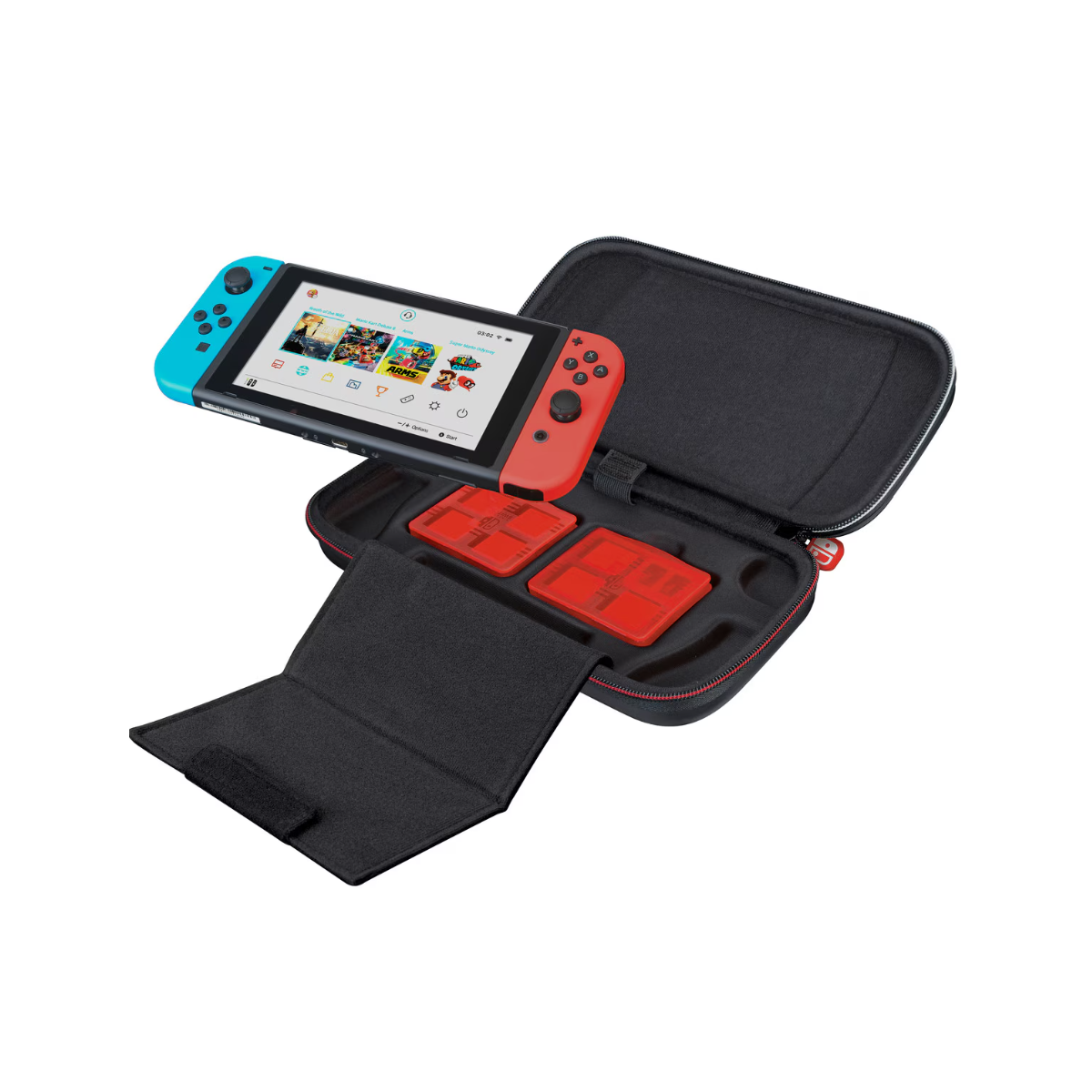 Lleva tu Nintendo Switch protegida y bien organizada a cualquier parte gracias a este pack deluxe con funda rígida y estuches para juegos y tarjetas micro SD.