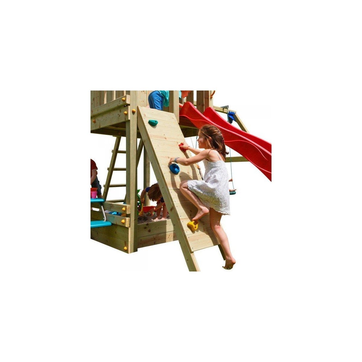 ¡Descubre la innovadora Rampa de Escalada de Masgames, el accesorio perfecto para elevar la diversion en tus parques infantiles! Este complemento de madera esta diseñado para subir a la plataforma elevada de los parques infantiles Masgames L o XL, con alturas de plataforma de 120 o 150 cm.